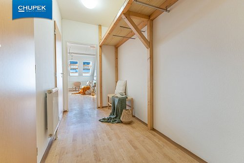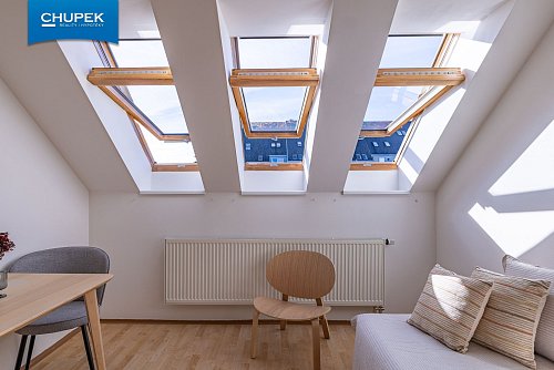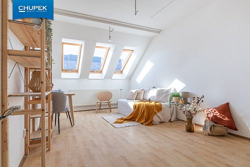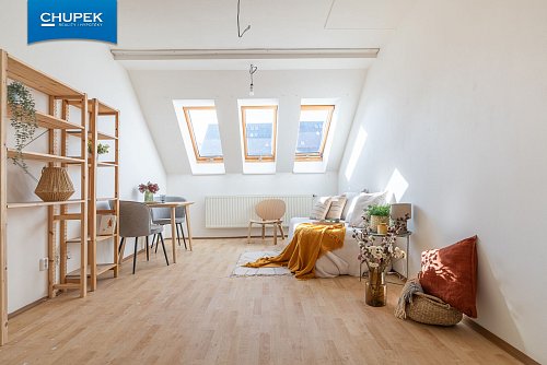 Tento světlý byt s užitnou plochou 30 m² se nachází ve 3. nadzemním podlaží cihlového domu s výtahem a sestává z předsíně (5,94m2), obývacího pokoje s kuch. koutem (19,34m2), koupelny (2,85 m2) a samostatného WC (1,6m2). Velká okna zajišťují dostatek přirozeného světla a krásný výhled. Byt je nezařízený a bez kuchyňské linky, takže si nový majitel může vytvořit prostor dle svých představ. Ideální je pro jednotlivce nebo mladý pár.