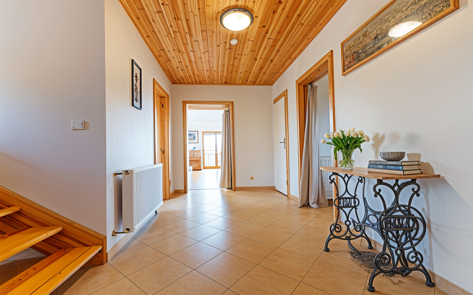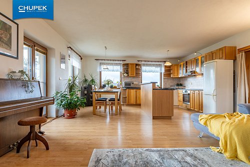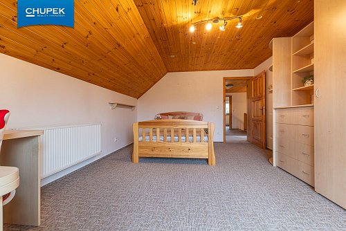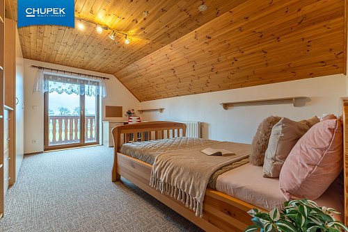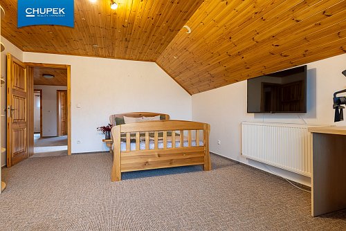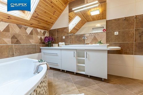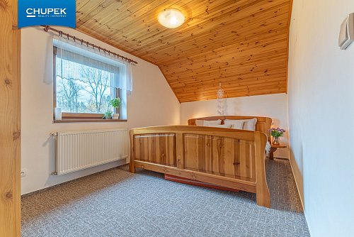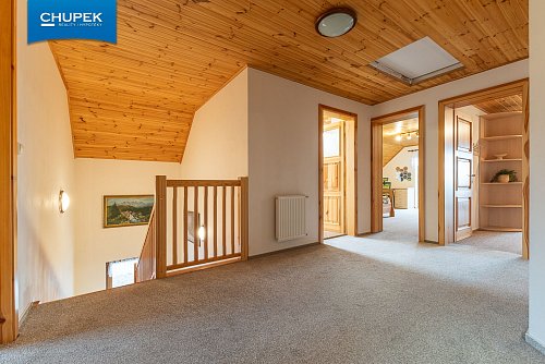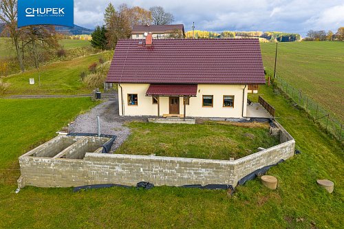 Dům o užitné ploše 205 m² byl zkolaudován v roce 2018, je postaven z kvalitních materiálů a vyniká precizním zpracováním interiéru. Dřevěné podlahy, obložení, masivní dveře a schodiště jsou výsledkem poctivé truhlářské práce a vytvářejí útulnou atmosféru domova. V přízemí se nachází prostorný obývací pokoj s kuchyňským koutem a jídelnou, spíž, koupelna, samostatné WC a technické zázemí, v patře pak čtyři pokoje, šatna, druhá koupelna a samostatné WC.